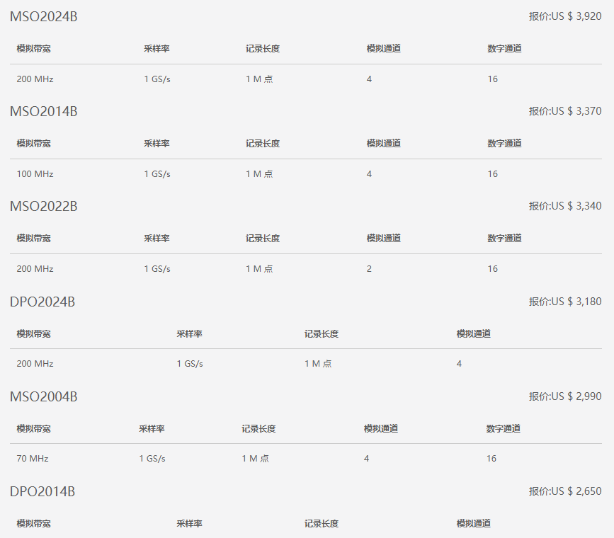泰克MSO/DPO2000混合信号示波器型号选择: