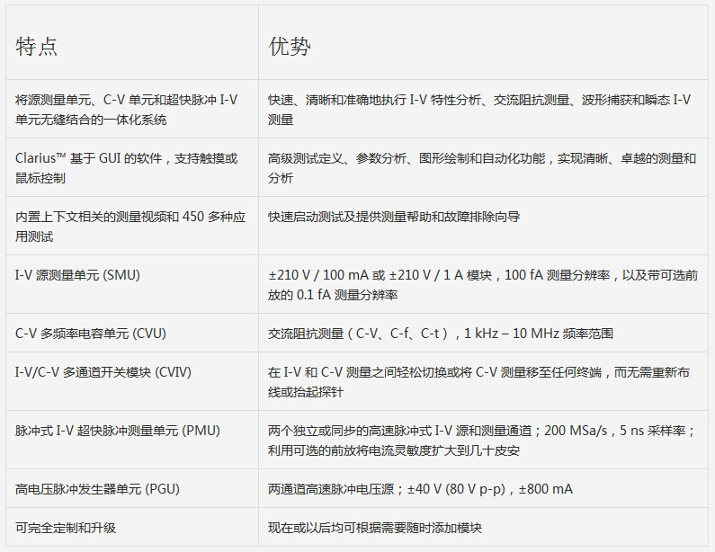 - 4200A-SCS 是一个模块化、可定制、高度一体化的参数分析仪,可同时进行电流-电压 (I-V)、电容-电压 (C-V) 和超快脉冲 I-V 电学测试。使用其可选的 4200A-CVIV 多通道开关模块,可轻松地在 I-V 和 C-V 测量之间切换,而无需重新布线或抬起探针。4200A-SCS 是最高性能的分析仪,可加快用于材料研究、半导体器件设计、工艺开发或生产的复杂器件的测试。