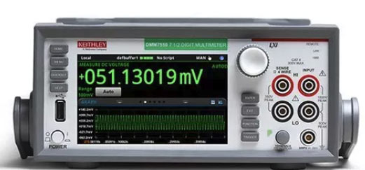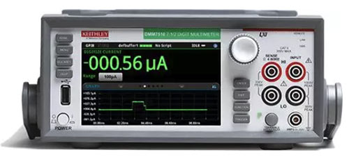 DMM7510 具有低噪声输入级和 32 位 A-D 转换器,体现了 Keithley 的低电平测量专长,能提供通常只有计量级仪器才有的直流精度。
