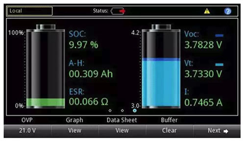 针对任何充电状态(例如,接近完全放电状态)对电池模拟器进行编程,以确定产品在低电量条件下的运行状况,以及确定低电量电池关闭电压。