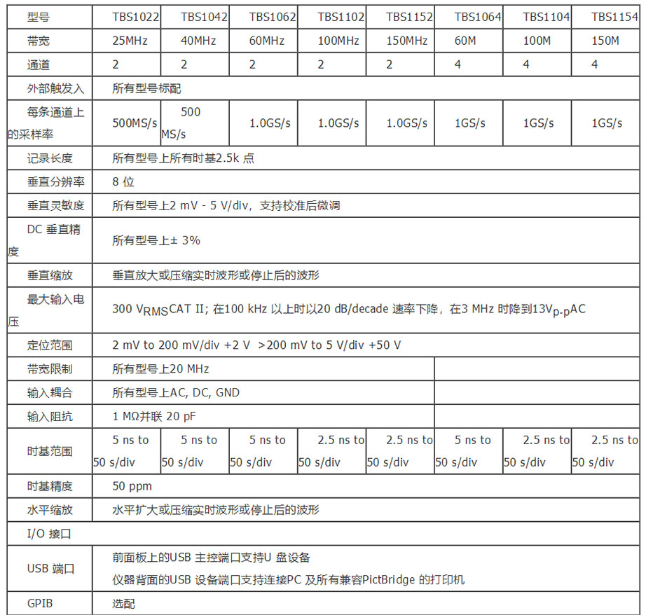 浅谈泰克TBS1104数字存储示波器与同系列示波器参数比较: 2018/5/24 10:15:17 泰克TBS1104数字存储示波器与同系列示波器参数比较: 泰克TBS1104数字存储示波器及其同系列示波器重要参数: