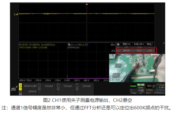 1.通道1探头地使用鳄鱼夹接地,通道2关闭(证明通道1信号原状,见图2)