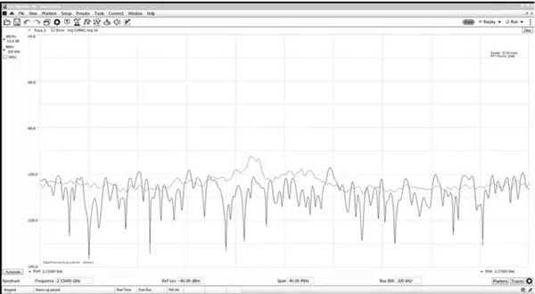 频谱分析仪有两种控制功能可以调节灵敏度:基准电平(RefLvl)和解析带宽(RBW)。挑战在于,在“空中”(OTA)进行测量时,基准电平必需保持得相当高(-30dBm),这样在测量所有RF能量时,频谱分析仪才不会过载。