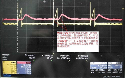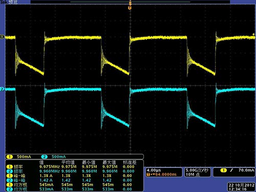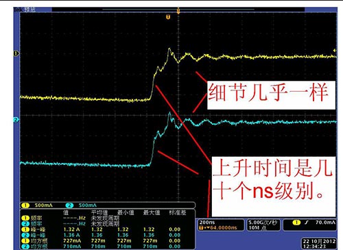 (2) 实测开关电源 MOS 管 DS 极间电流对比
